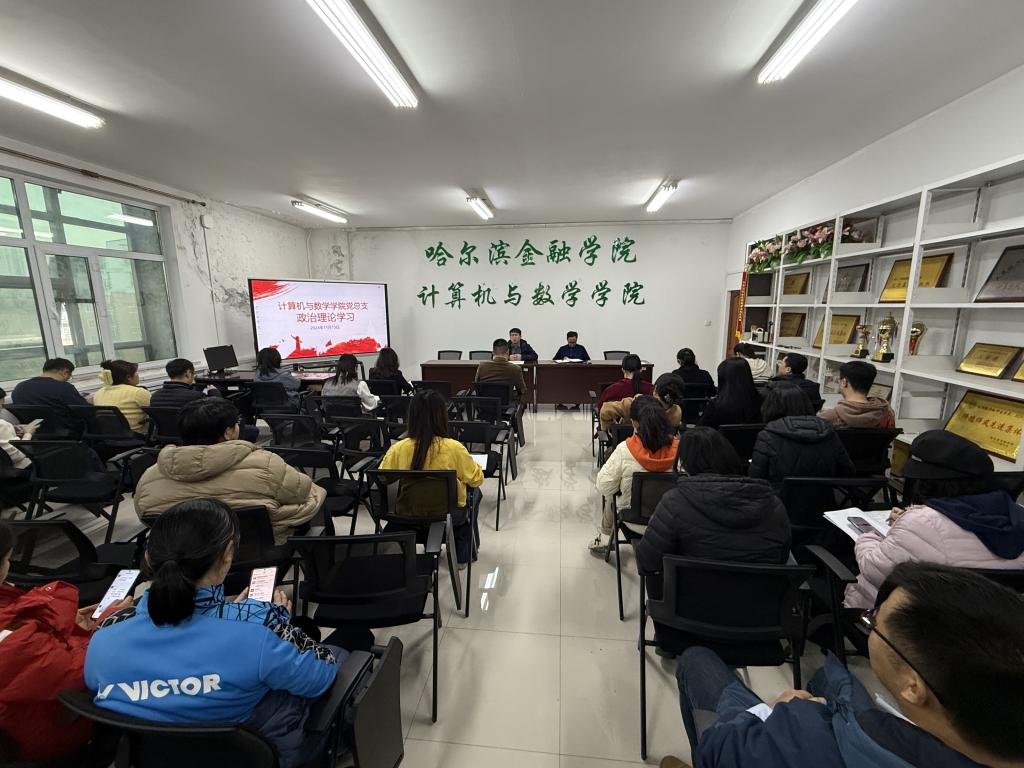 11月13日下午,计算机与数学学院在会计楼509室开展政治理论学习活动,深入学习贯彻习近平总书记《论教育》,传达学习习近平总书记在全国民族团结进步表彰大会上的重要讲话,学习《求是》杂志发表的习近平总书记重要文章《促进高质量充分就业》。会议由党总支书记王鹏主持,学院全体教职工参加会议。