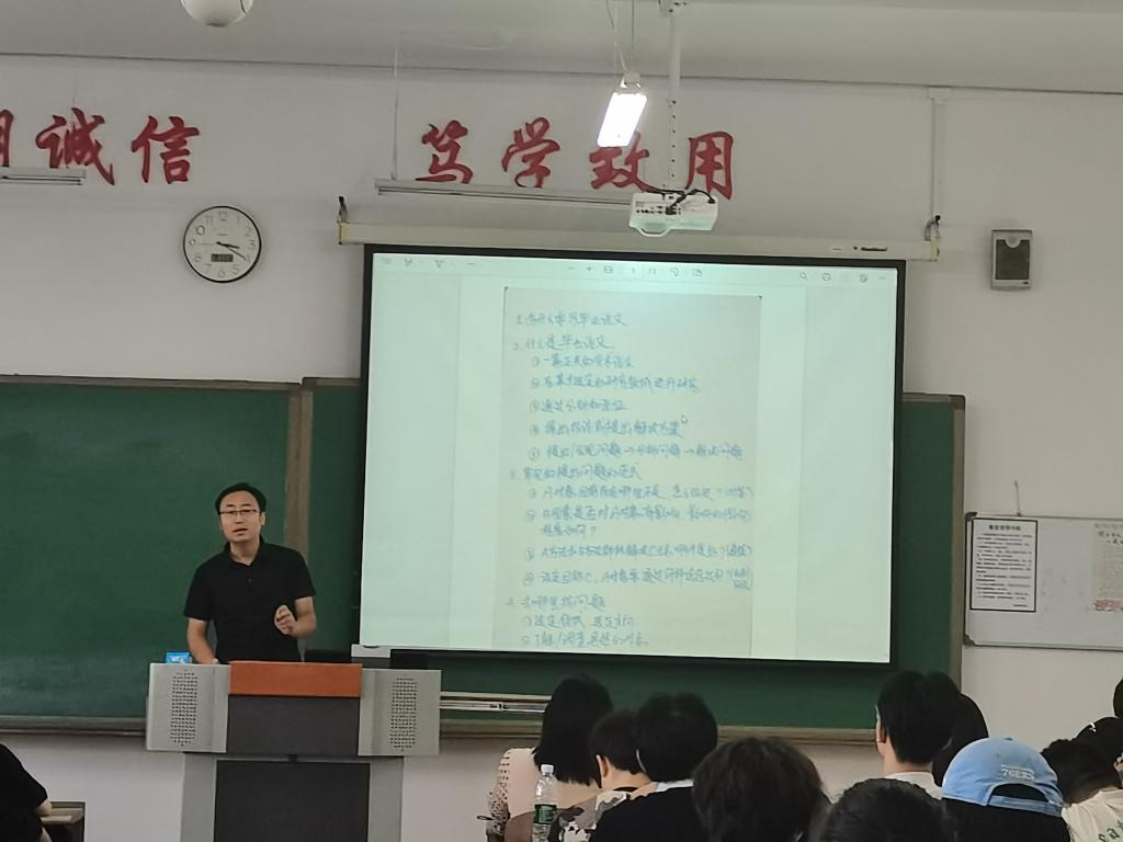 最后,张春越老师凭借其丰富的上届毕业论文指导经验,从三个核心维度——“毕业论文的本质”、“常见问题提出模式”以及“问题来源的探索”——为学生们提供了详尽的介绍。他深入剖析了每个方面,确保学生们能够全面理解毕业论文的深层含义。之后,他对2025届毕业论文的撰写规范进行了细致的解读。他特别强调了学术诚信的重要性,指导学生们如何准确把握论文结构的内在逻辑,以及如何撰写出高质量毕业论文。他的讲解不仅提升了学生们对学术规范的认识,也为他们的写作之路指明了方向。