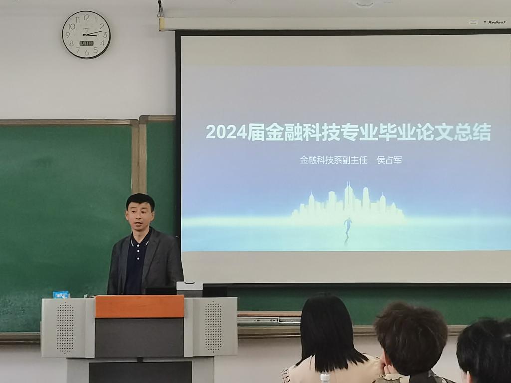 随后,侯占军副主任对2024届金融科技专业的毕业论文进行了深入的总结,并基于往届的宝贵指导经验,为本届毕业生提供了极具价值的建议。这些建议涵盖了选题方向的确定、开题报告的撰写、论文结构的合理安排,以及论文写作的整体思路等多个关键方面。他特别强调,毕业生们需要细致阅读学院发布的毕业论文通知文件,以确保对论文要求和流程有清晰的理解,从而更有效地推进自己的研究工作。