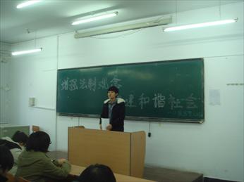 为加强我校学生法制教育,提高学生法律意识,增强学生法制观念。使学生青年做到学法,懂法,并树立起相应的法制观念,以便成为适应社会发展需要的合格公民。特此计算机系团总支组织各团支部开展了以“增强法制观念 构建和谐校园”为主题的班会宣传活动。