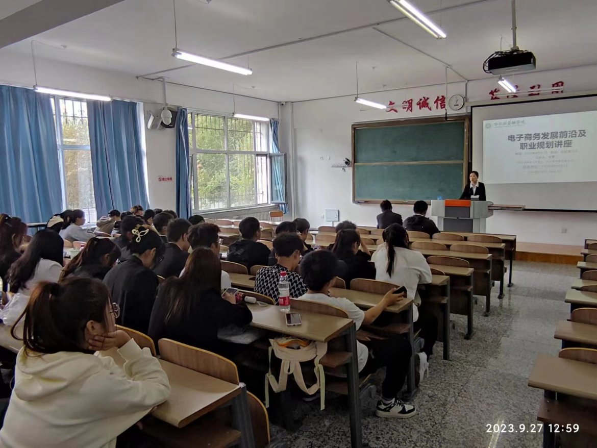 计算机与数学学院于2023年9月27日在综合楼123教室开展针对2023级电子商务专业学生的《电子商务发展前沿及职业规划》的金苑讲座。讲座由电子商务专业带头人、教研室主任李蕾老师主讲,与2023级电子商务专业学生进行座谈。