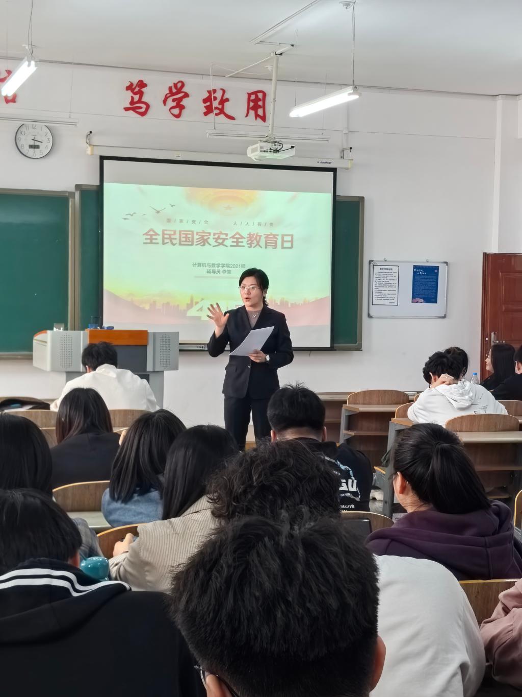 为进一步引领广大青年学生深入学习总体国家安全观,坚定不移走中国特色国家安全道路,切实增强忧患意识和使命担当,增强国家认同感和民族自豪感,勇于为维护国家主权、安全、发展利益担当作为,计算机与数学学院在第九个全民国家安全教育日之际,认真开展国家安全教育活动,各年级辅导员组织召开主题班会、参加知识答题等活动。