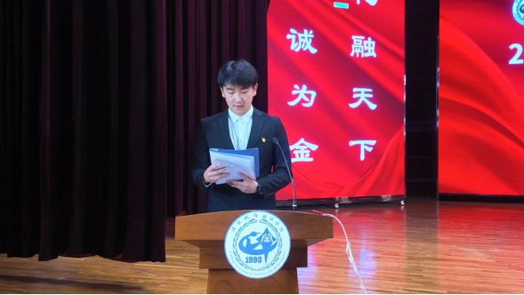 2025级金融科技1班谢泽彤代表新生进行发言,发言中充满了对未来的憧憬与期待,以及奋斗进取的决心与斗志。她表示:“我们会认真对待每一个机会、每一次挑战”,这是新同学的承诺,也是全新的开始。