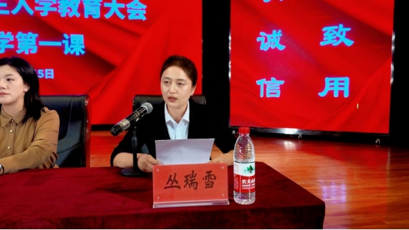 教师代表丛瑞雪老师,在专业学习、创新竞赛、学习经验等方面进行了分享,鼓励并提醒同学们“别害怕提问,别拒绝尝试”,她希望每一个同学都能在大学里找到属于自己的光。
