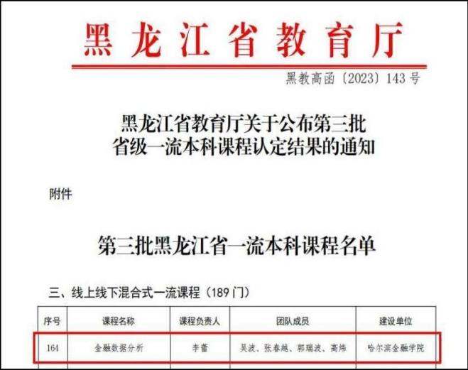 李蕾,中共党员,副教授,电子商务系系主任,专业带头人,校级教学名师。主讲《金融电子化》、《金融数据分析》和《电子商务网站开发》课程,其中《金融数据分析》被认定为黑龙江省线上线下混合式一流课程,《金融电子化》被认定为校级一流课程。承担和参与科研项目十余项,其中参与部级项目1项、省级重点项目3项,主持完成省级项目2项、厅局级项目3项(含主持完成校级课程思政项目1项);发表学术论文十余篇,其中EI论文4篇;主编清华大学出版社出版的《Python金融数据分析》教材1部,参与编写教材4部、撰写专著1部。主持申报《电子商务跨学科应用型人才培养的创新与实践》获评校级教学成果奖1项,参与申报省级教学成果奖获二等奖1项、校级教学成果获一等奖3项;获黑龙江省青年教师教学竞赛二等奖,获校级教学创新大赛一等奖,多次获校优秀毕业论文指导教师、校优秀教师称号,曾获校级多媒体课件大赛、微课大赛和青年教师教学竞赛二等奖;指导学生参加学科竞赛,获得国家级三等奖2项、省级一等奖1项和二等奖3项。