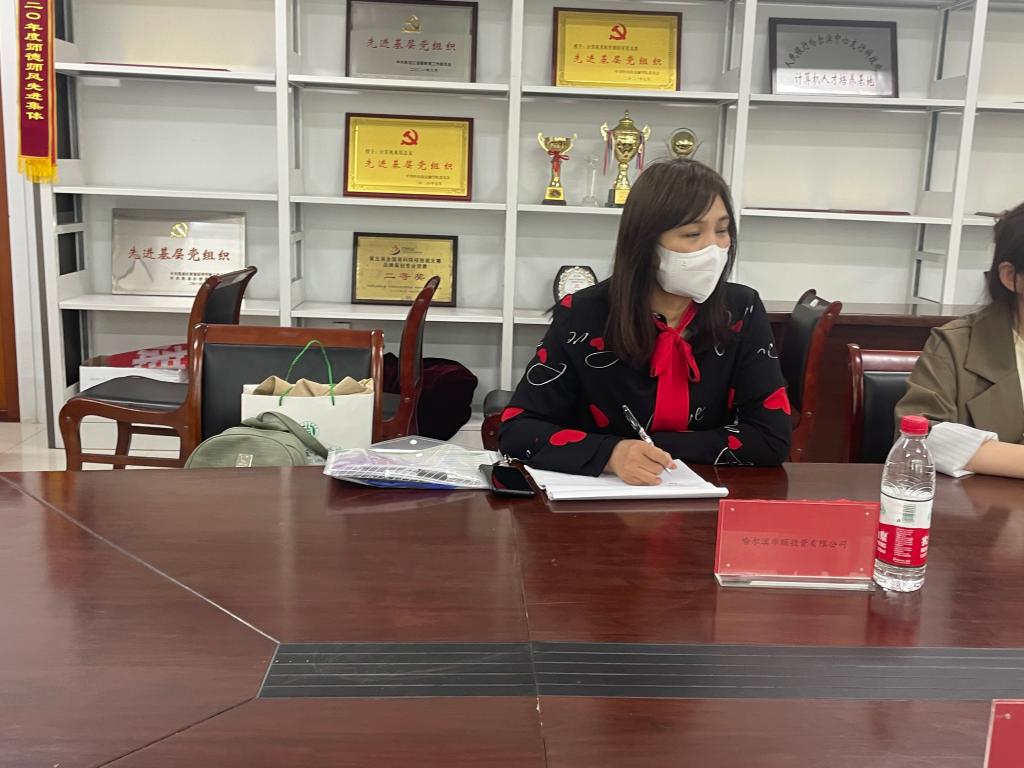 为深入贯彻学习习近平新时代中国特色社会主义思想主题教育活动,落实“工作落实年” 工作,提升就业水平。5月19日上午,计算机系在会计楼509与哈尔滨华联投资有限公司调研交流。计算机系党总支书记陈丽彤、计算机系主任吴波、计算机系副主任许毅、哈尔滨华联投资有限公司人事部经理王艳茹、辅导员刘兆奇、张立立、徐岳参加此次交流。