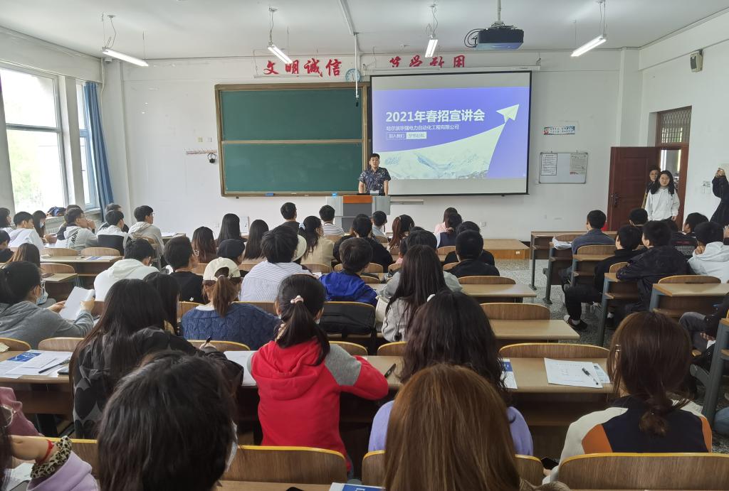 2021年5月14日上午11:30分,计算机系在综合楼223教室举办哈尔滨华强电力自动化工程有限公司招聘会。在现场招聘会之前,计算机系2021届毕业生部分同学,通过线下实习和面试等机会,已经初步了解华强电力的规模及工作流程,公司规模和实力深受毕业生青睐。