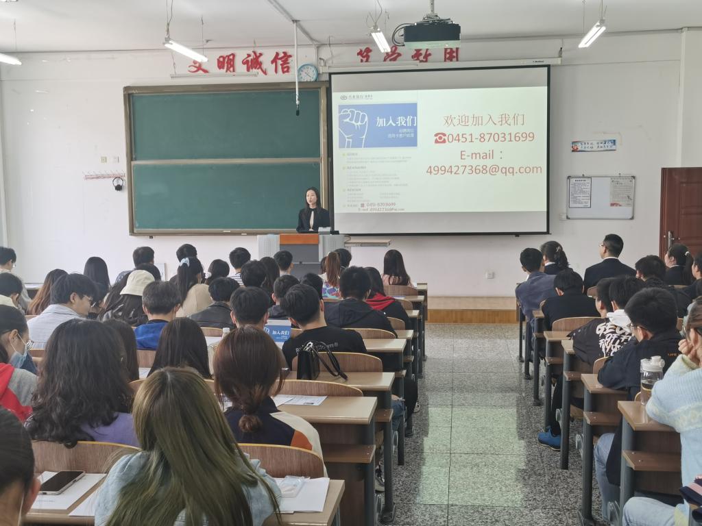 本次前来招聘的部门是兴业银行股份有限公司哈尔滨分行零售金融部信用卡营销中心。分行销售主任,区域经理、总行信用卡中心行销推广领导亲临现场,向学生详细介绍兴业银行的发展历程和未来规划,并重点介绍本次宣讲会主要招聘方向、业务范畴及工作要求。招聘负责人根据自身成长及工作经历,结合行业发展及就业市场现状,为学生答疑解惑,真诚打动招聘现场全体学生。既是一次成功的招聘宣讲,也是一次意义深刻的就业指导。