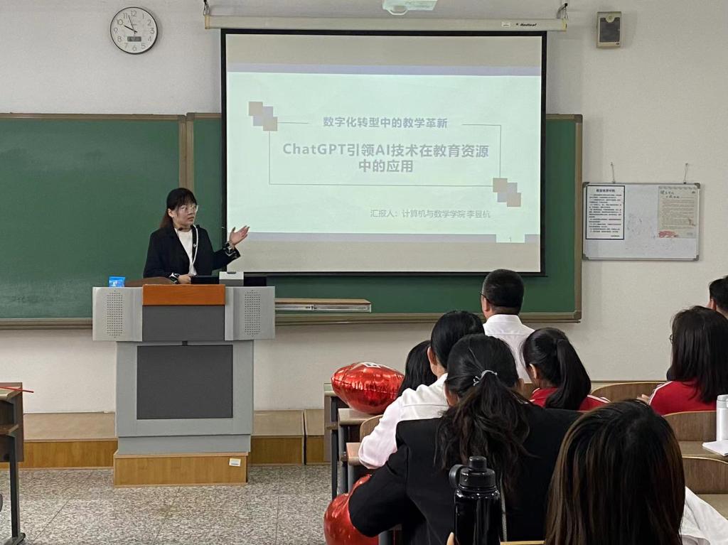 2024年6月2日,计算机与数学学院在综合楼205教室举办了ChatGPT引领AI技术在教育资源中的应用讲座,计算机与数学学院金融科技教研室教师李昱杭主讲,计算机与数学学院全体教师参加本次讲座。