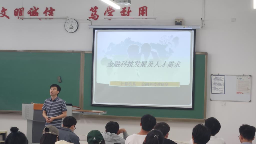 为了增强计算机系金融科技专业学生对专业的认知,扩展专业知识面,2023年6月8日,金融科技专业带头人侯占军老师在综合楼101教室为2022级金融科技专业同学做了主题为“金融科技发展及人才需求”的专题讲座,讲座吸引了近百名同学积极参与。在将近两个小时的分享与互动后,此次讲座圆满结束。