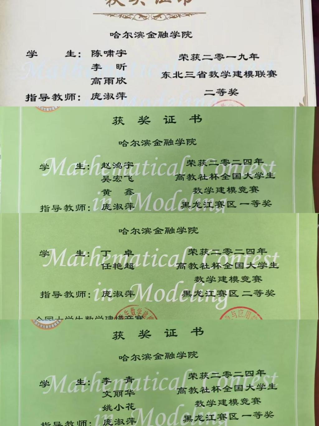 团队注重学生应用能力培养,鼓励学生参加各类学科竞赛。近五年团队教师指导学生参加全国大学生数学建模大赛、东三省数学建模大赛、全国大学生数学竞赛,全国大学生统计建模大赛等教育部认可的大学生学科竞赛。其中,获国家二等奖4项;获省级一等奖12项;获省级二等奖10项;省级三等奖30余项。